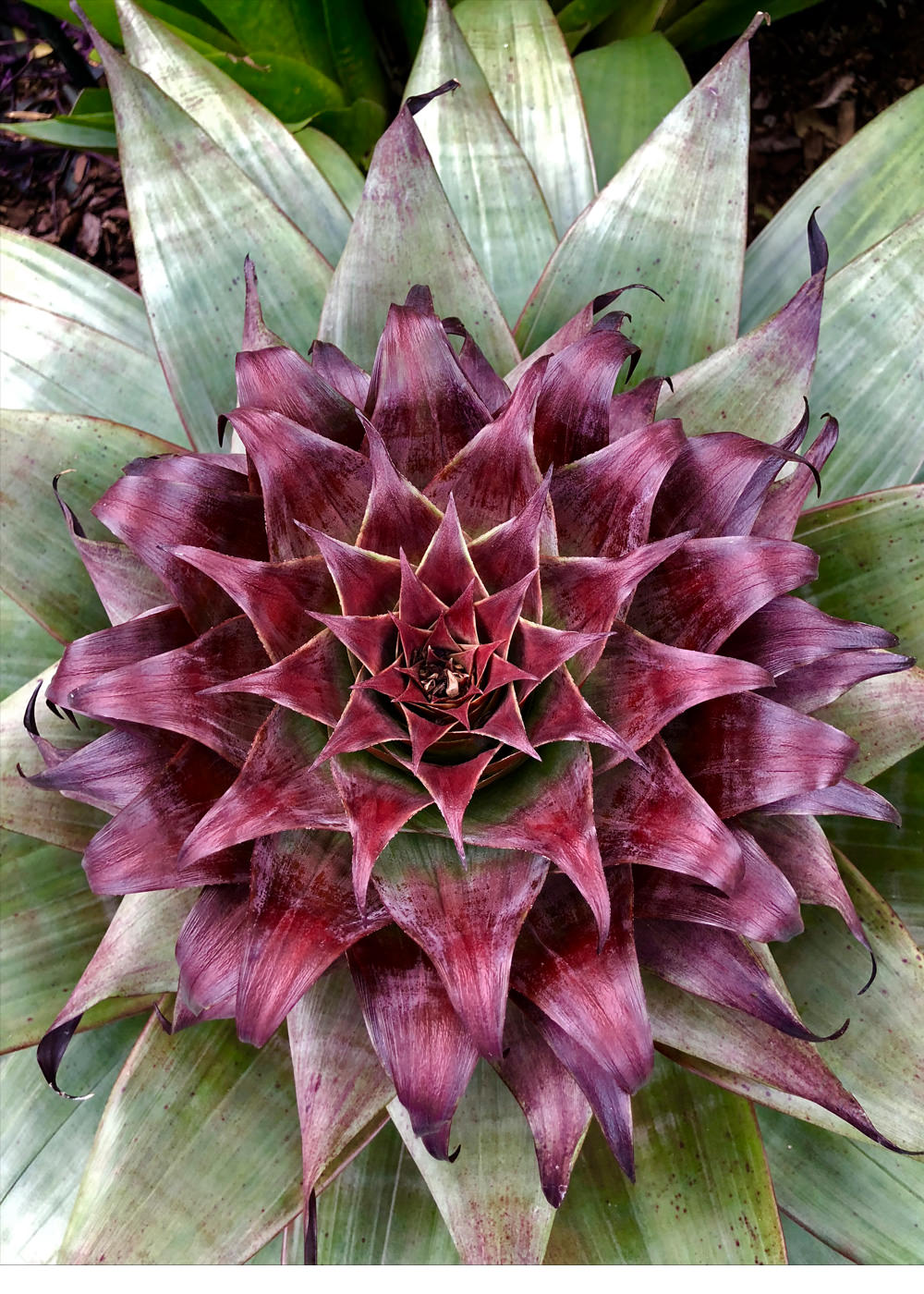 • Description: Large spineless green foliage with a red under-leaf.